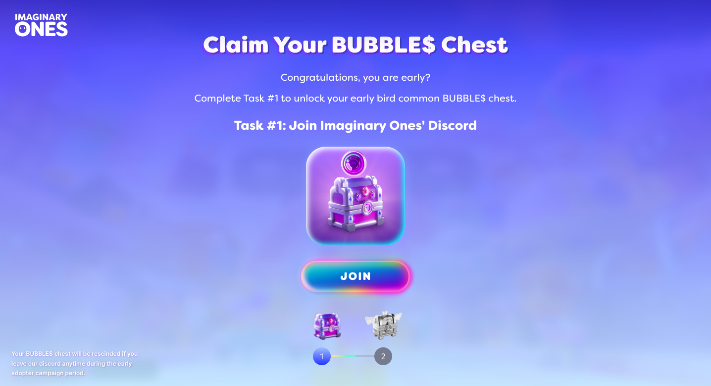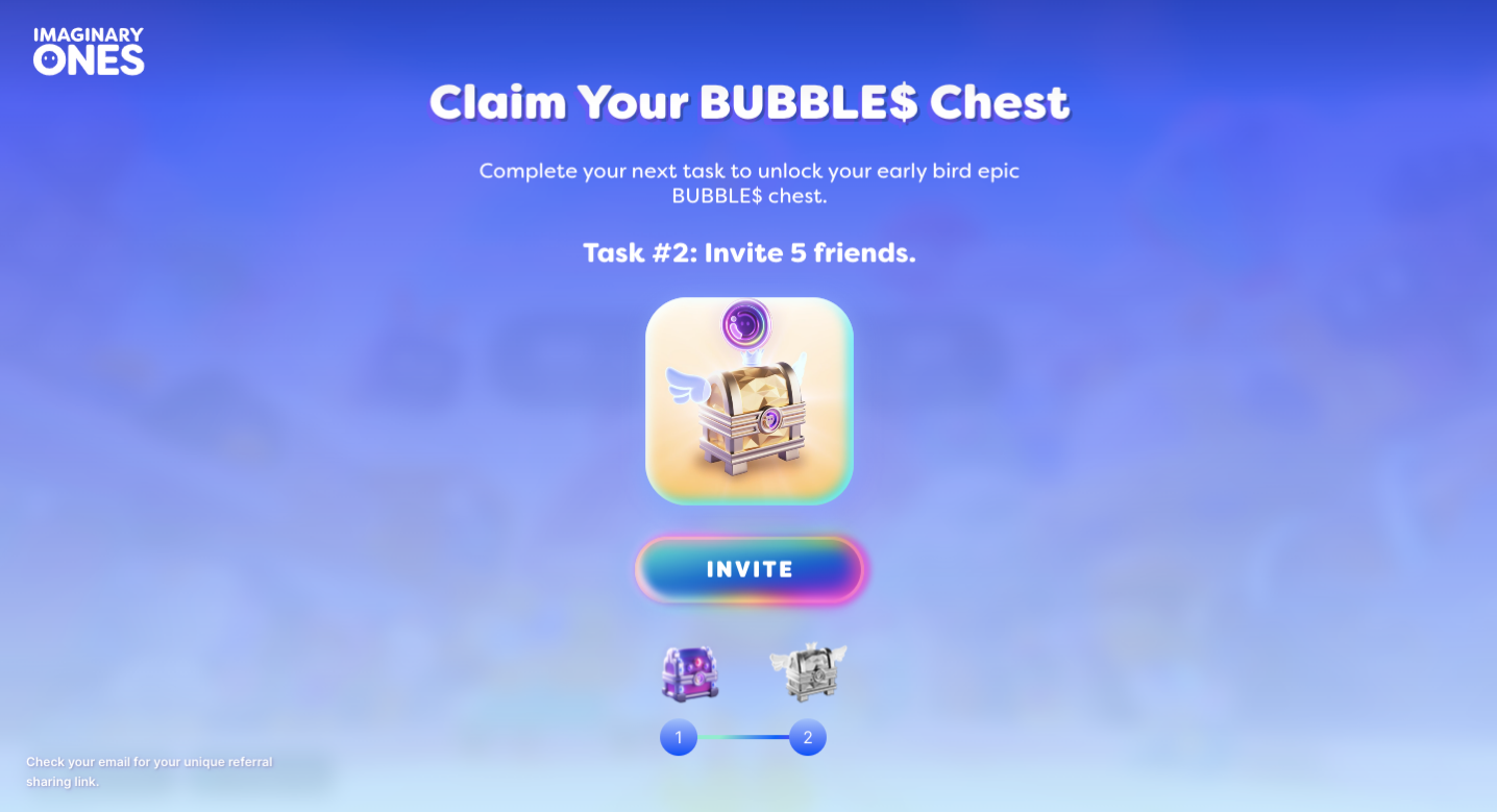 To receive the Epic BUBBLE$ chest, invite 5 friends to join the EARLY BIRDS website using the unique referral link we've provided to you.&#x20;