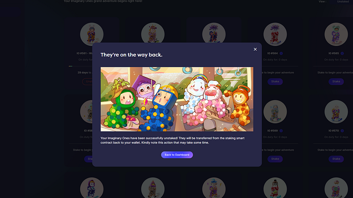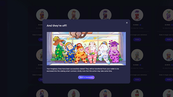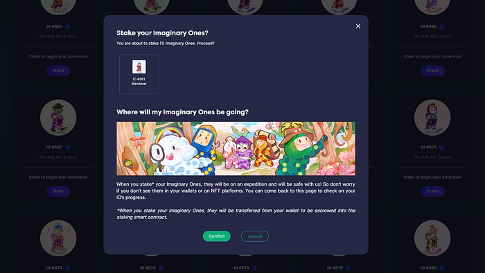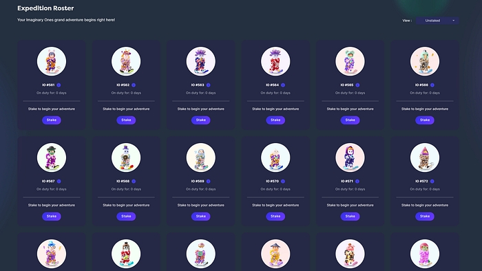 From 1st August 2022 at 8pm SGT, holders of Imaginary Ones will be able to stake their IO NFTs through the official website: https://world.imaginaryones.com.